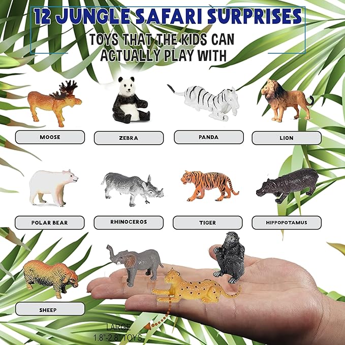 - 12 Bath Bombs for kids with surprise inside - All natural ingredients with no undesirable additives. Your kiddo will love the colorful scented water, bubbly foam, and a unique high quality surprize jungle toys in each egg bathbomb.