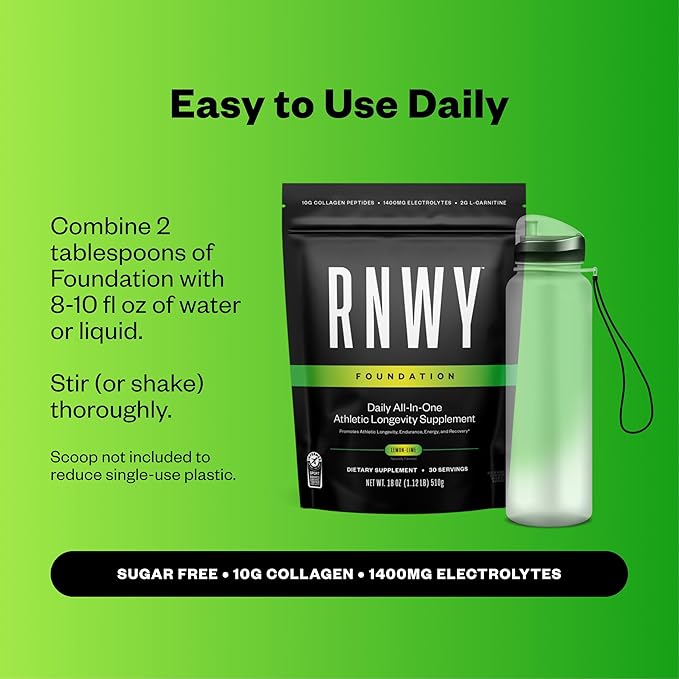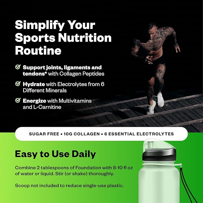 Foundation 10g Collagen Peptides + Hydration Powder, Daily Joint Support with Electrolytes, Lemon Lime, Sugar Free, 30 Servings