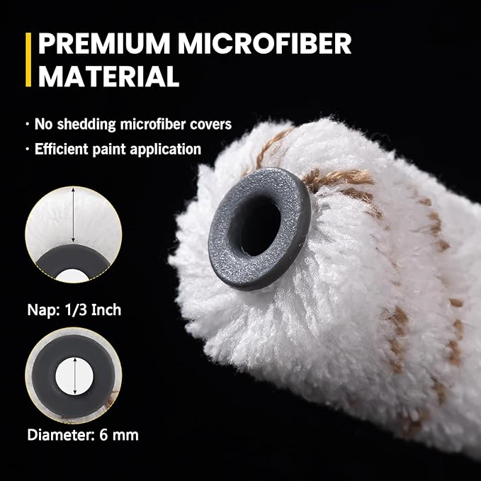 - High Quality Material: Microfiber paint roller cover plush with high density that is strong and not easy to fall off, It also has excellent paint absorption, providing smooth rolling coating during painting