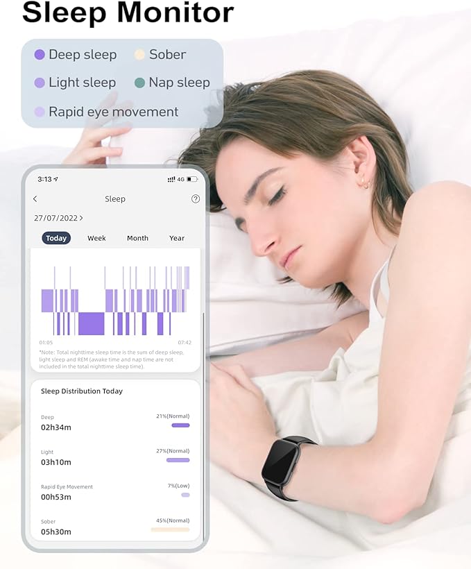 - 【All-Day Fitness Tracking】 This fitness watch can accurately track your fitness all day long, such as steps, distance, and calories. With more sports modes supported by the App, this fitness tracker watch can track your most daily sports. It also continuously measure your heart rate, blood oxygen levels, and sleep status, offering a comprehensive view of your health.