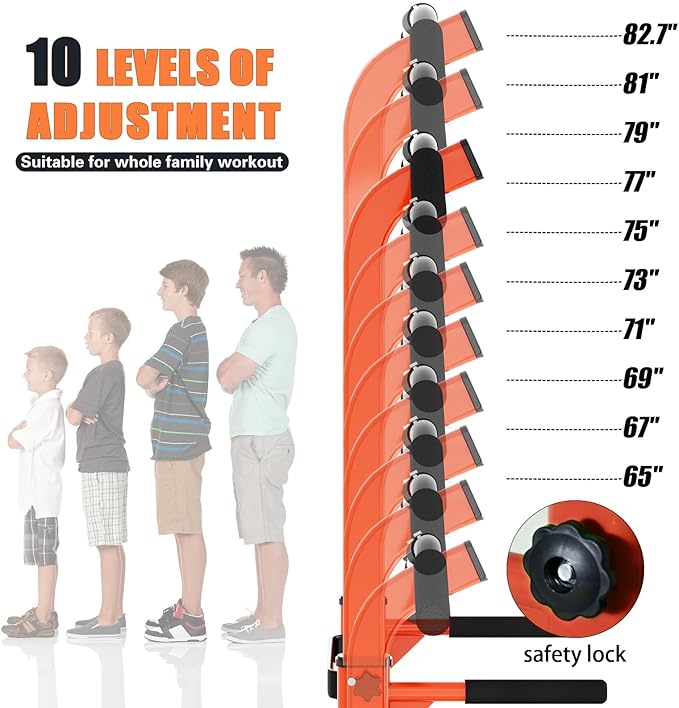 - 10 Levels Height Adjustment: Measuring 32.3Lx29.5Wx65~82.7H (inches) and supporting a weight capacity of 330LBS, this pull up bar is an ideal fitness tool for adults in their homes or offices. The height of the pull up tower can be adjusted from 58.5~82.7", making it suitable for all fitness needs. And the lowest level is tailored for kids, while the pull up bar station caters to the entire family's workout needs.