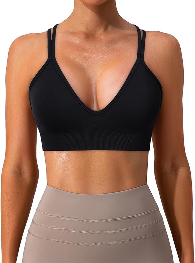 Sports Bra for Women V-Neck Strappy Criss Cross Yoga Bra Padded Medium Support Workout Gym Athletic Fitness Bras 3 Pack