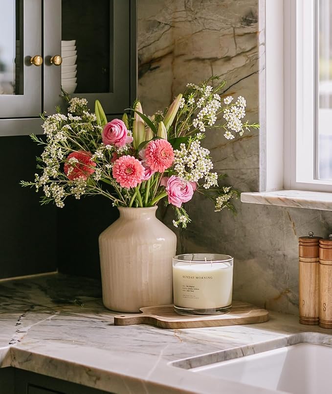 - Dreamy Fragrance: Reminiscent of whiling away a Sunday morning at the local farmer's market amidst fresh flowers and fruit, the Sunday Morning candle features top notes of pear and bergamot, with a heart of jasmine and gardenia and a base of amber woods