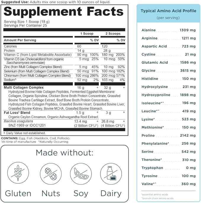 - Healthy Weight Management* and Fat Loss Support*: Achieve your weight management* and fat loss goals* with a blend of 10 collagen types from food-based sources, ancient superfoods and clinically studied ingredients. *In addition to a healthy diet and lifestyle, including regular exercise.