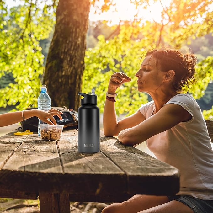 - 【DOUBLE WALL VACUUM INSULATION】Our water bottles with straw are constructed with double wall vacuum insulated technology, keeps beverages Cold up to 24 hours and Hot up to 12 hours. Made of non-toxic BPA-free plastics & durable food-grade stainless steel. The anti-slip layer ensures you hang on to your bottle during the toughest activities.