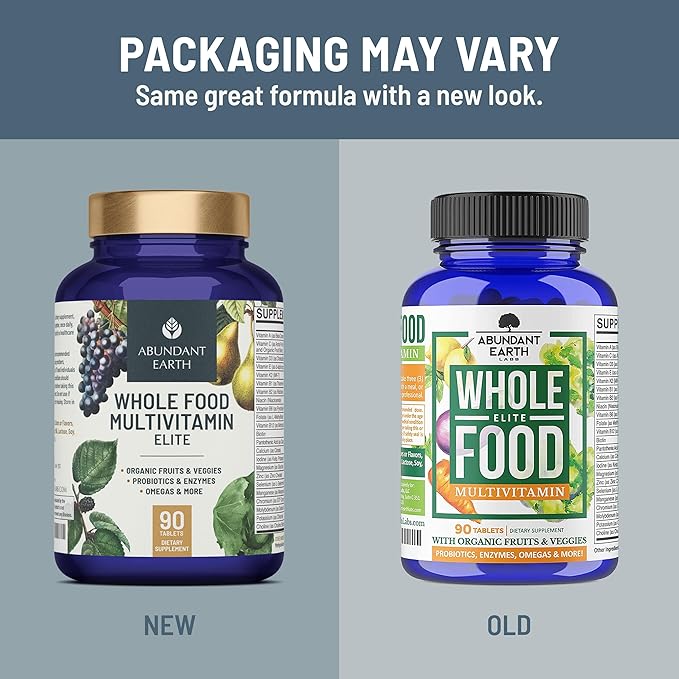 Abundant Earth Whole Food Multivitamin for Women Daily Multi Vitamins Supplements for Men Mens Multivitamins + B Complex, Probiotic Multi Enzyme, Omegas for Organic Energy Mood Digestion 90ct-4pk