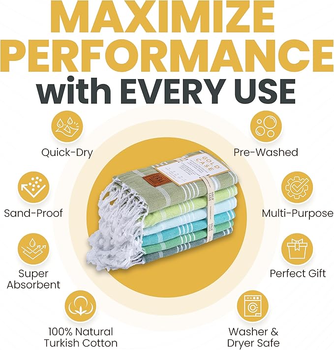 GOLD CASE HOME COLLECTION Lycia Original Turkish Hand Towels by Gold CASE-Set of 6-20x40'' 100% Cotton Decorative Bathroom & Kitchen for Hand,Face,Hair,SPA,Farmhouse,Gym, and Dishcloth,Tones of Green