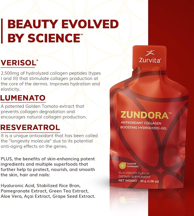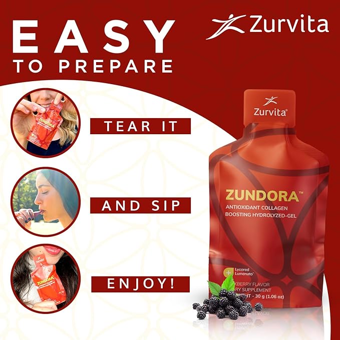 Zurvita - Zundora Collagen - Hydrolyzed-Gel for Healthy Hair, Skin & Nails - Beauty Boost with Verisol - BlackBerry Flavor - Travel Size - 30 Servings