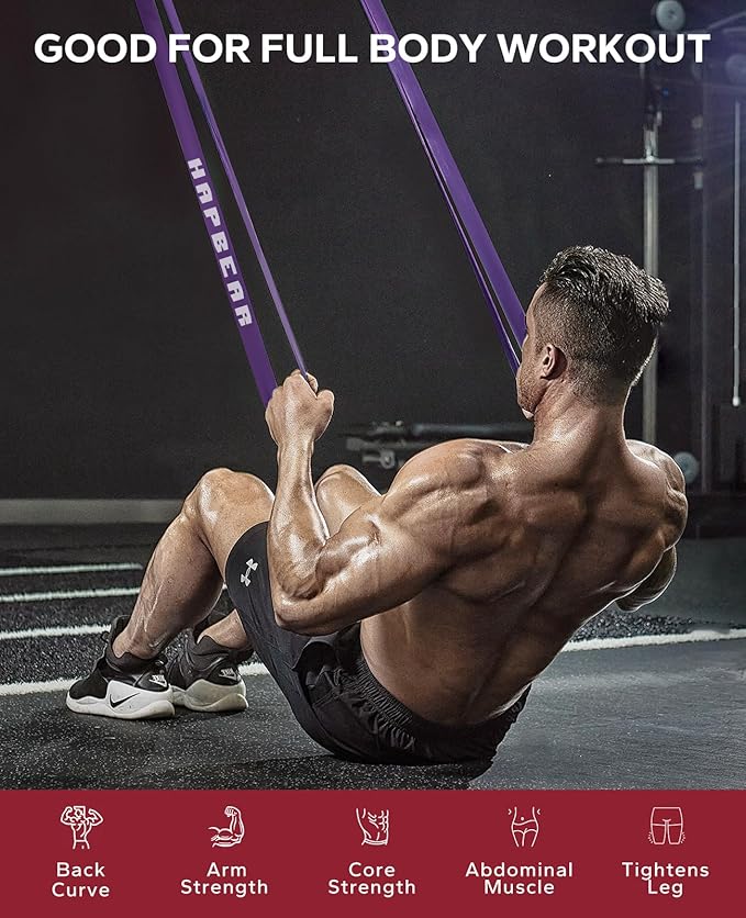 - [Full-Body Training Solution]: HAPBEAR's pull up bar bands assistance bands are designed for both men and women, targeting arms, back, legs, glutes, chest, core, and abs while enhancing flexibility. They excel in physical therapy, weight loss, injury recovery, and speed training.