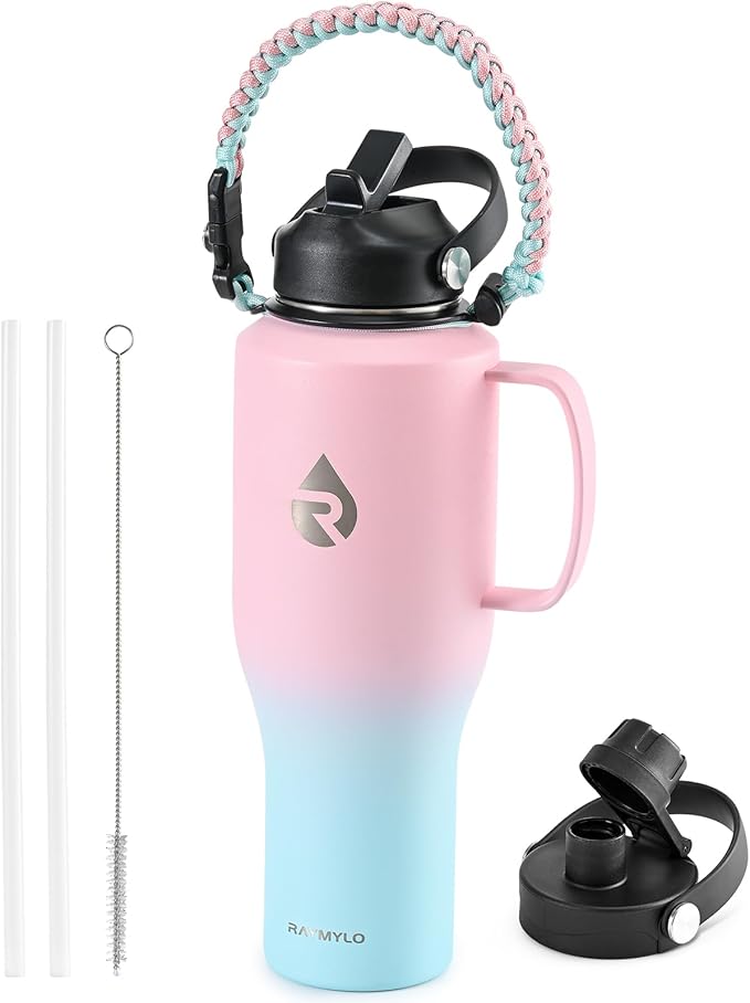 - 100% Satisfaction Support: We offer continuous after-sales service, making sure this bottle sticks around in its top game for years. Package contains 1 x RAYMYLO Car Water Bottle with Handle, 1 x Straw Lid with 2 x Straws & 1 x Straw Brush, 1 x Spout Lid, 1 x Paracord Handle