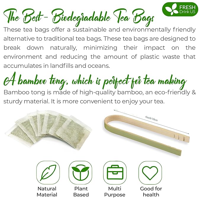 - ☘️ BIODEGRADABLE TEA BAG - NATURAL MATERIAL: The tea bags are made of natural corn fiber, which is friendly for the environment. No Strings. No Wrapped. No Staples. No Adhesive. No Bleach. No Dyes - 100% Safety.