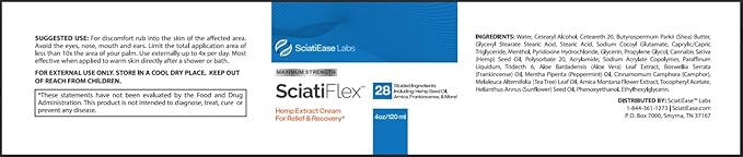 - Science-Backed Formulation: SciatiFlex is our expert-formulated hemp oil cream designed to soothe discomfort. So, you can go back to living your life to the fullest. Anytime, anywhere.