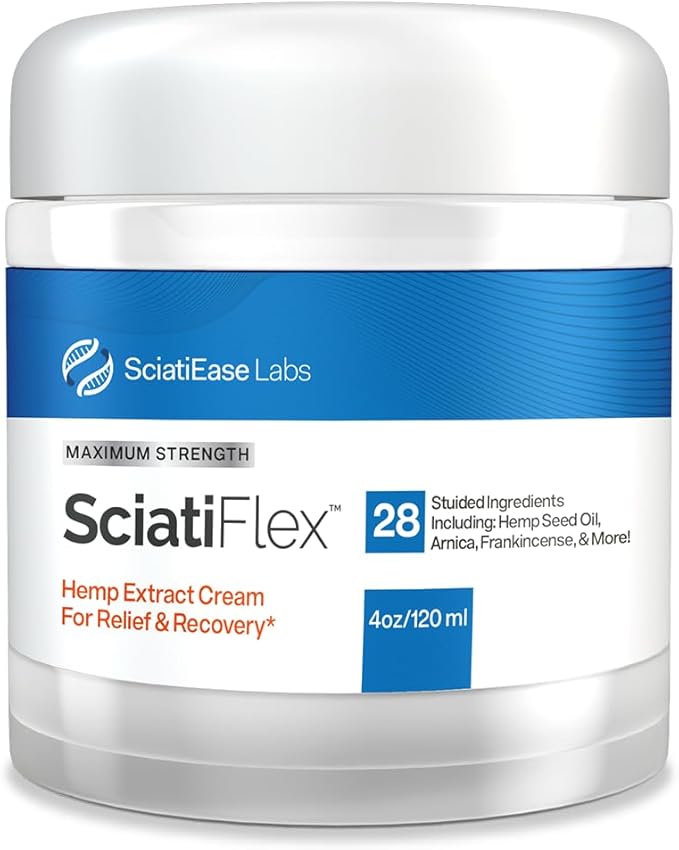 SciatiFlex Topical Sciatic Cream - Maximum Strength for Sciatic Nerve Discomfort in The Lower Back, Hips, Buttocks, Legs and Feet - Hemp Cream with Arnica Extract, Shea Butter, Aloe Vera - 4oz