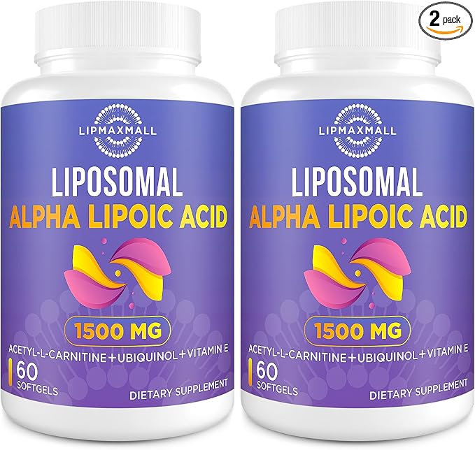 Liposomal Alpha Lipoic Acid 1500mg - with Acetyl-L-Carnitine 900mg & Ubiquinol 100mg & Vitamin E 15mg,ALA Supplement for Antioxidants Glucose Metabolism Nerve Energy,60 Softgels (2 Bottle)