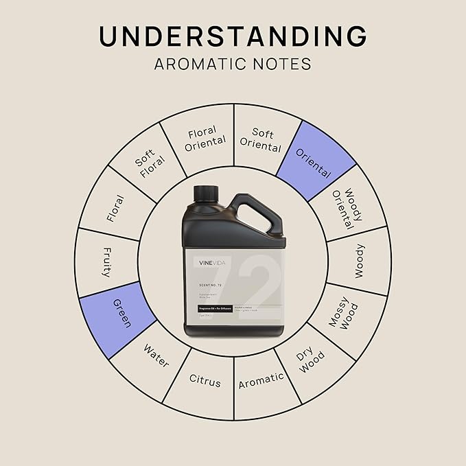 - EXCEPTIONAL SCENT EXPERIENCE: Immerse yourself in the luxurious world of White Tea Fragrance Oil for Diffusers. Transform any space into a tranquil haven, where the crisp notes of green, lemon, lavender, and musk come together to create an exceptional olfactory experience. User Write an effective product description to list on Amazon for the following product: (VINEVIDA White Tea Fragrance Oil For Cold Air Diffusers, Essential Oils for Diffuser Oil Refill & Air Freshener Room Spray) Which co