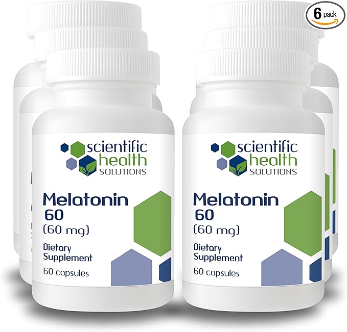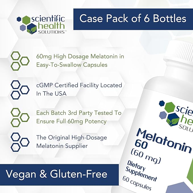 Melatonin 60mg | High Dosage Melatonin in Easy-to-Swallow Capsules | Vegan, Non-GMO & Gluten-Free | US-Made Extra Strength Melatonin (Case of 6)