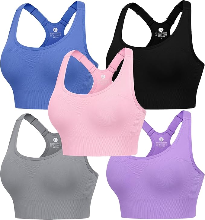 • Wide Racerback: These high support sports bras can conquer high-intensity workouts.Our adjustable racerback sports bras pack featuring the upgraded wide straps, meticulously engineered to provide high support and comfort during even the most intense workouts.The y back not only adds a touch of elegance to your workout bras ensemble but also evenly distributes pressure across your shoulders and back.This improves comfort during workouts,reducing strain and potential discomfort after your session.