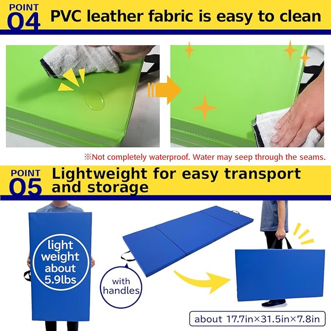 - This mat can be folded into four pieces, making it lightweight, compact, and easy to carry despite its wide size.