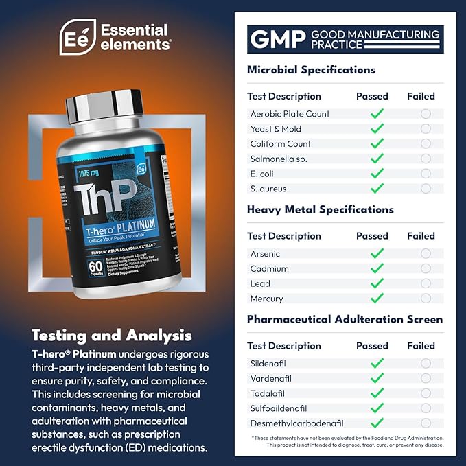 - SCIENTIFICALLY FORMULATED FOR MAXIMUM EFFECTIVENESS: High-quality ingredients at effective doses give you the advantage of peak efficacy and potency.* T-hero Platinum features industry-leading Shoden Ashwagandha Extract which has been clinically studied to help improve male testosterone and DHEA-S levels in 2 months.*