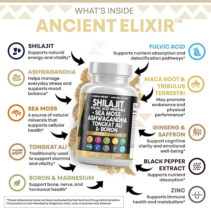 - CoQ10, PQQ & Magnesium for Energy Support – Supports nutrient absorption and cellular energy with CoQ10, PQQ, magnesium, and black pepper. These essentials work synergistically with shilajit, sea moss, and ashwagandha to promote whole-body energy, focus, and wellness every day.*