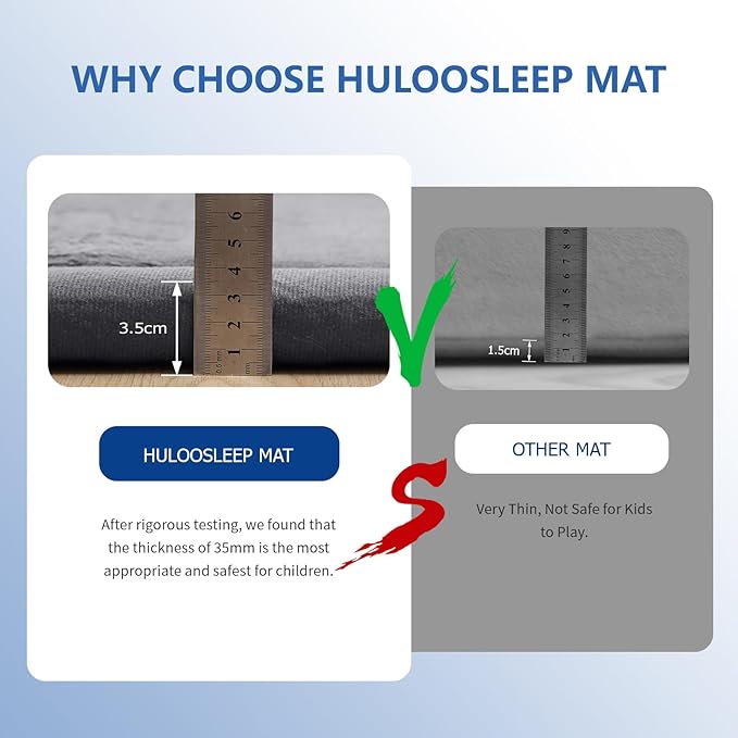 - 【FITS TO MULTIPLE OCCASION】:It can be used as a yoga mat for exercise, a tatami rug for a traditional Japanese style, and is compatible with floor heating. It provides a comfortable spot for adults to relax and watch TV, as well as a pet-friendly cushion for your furry friends to sleep on. The design helps absorb sound, reducing noise in busy homes. With a thickness of 35mm, this kids' play mat ensures your bedroom or living room is an incredibly comfortable personal space. Unlike most baby play mats made of solid plastic that clash with home decor, the HulooSleep Crawling Mat elegantly addresses this issue