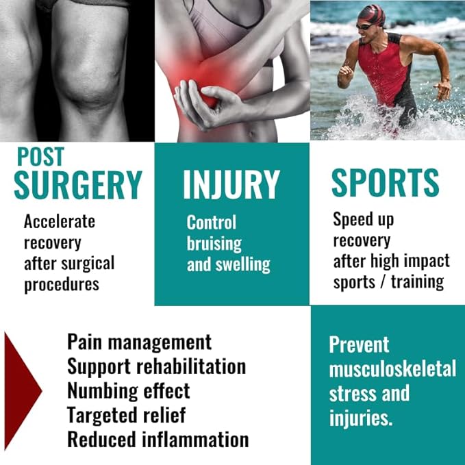 - ✓ POST-SURGERY ESSENTIAL AND ATHLETE ALLY: Our formula not only numbs the site for immediate relief but also actively diminishes scars, bruising, swelling and itch, making it a vital companion for post-operative care and a trusted ally for athletes.