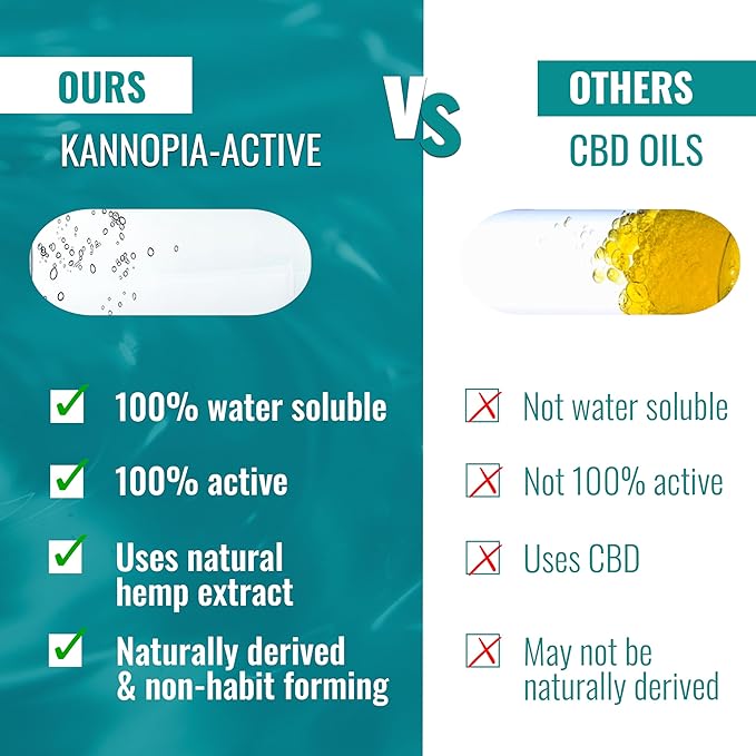 - ✓ UNLOCK THE POWER OF KANNOPIA-ACTIVE, the industry-leading HEMP EXTRACT. Unlike traditional hemp oil, this groundbreaking botanical is 100% water-soluble and 100% active, surpassing hemp oil and NANO hemp products in terms of bioavailability and effectiveness. In certified Gene Marker tests just 300mg of Kannopia-Active proved as potent as 230,400mg of Hemp Oil.