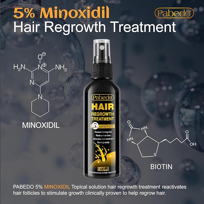 - POWERFUL HAIR GROWTH FORMULA - 5% Minoxidil, Biotin, Castor Oil and Niacinamide these 4 main ingredients in combination with several vitamins, in noticeably thicker, fuller, and younger-looking hair. 5% Minoxidil stimulates hair growth, Slows down and orevents hair loss, Biotin Stimulate keratin production in hair follcles, Castor oil promote hair growth by smoothing and conditioning follcles, Niacinamide vitamin B3 to improve hair growth and thickness.NDC:84026-101-01