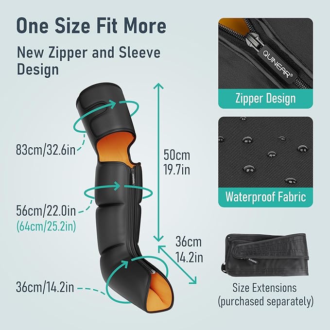 - FIND YOUR OPTIMAL SETTING - This leg massager for circulation comes with an LCD screen control unit for you to play with the settings and find the best massager configurations. Brand new ZIPPER sleeve design and new materials, to further improve the service life and comfort of the massager and TBP fabric is easier to clean, Zipper design easy to put on and wear, whatever tall or skinny, one size fits more.