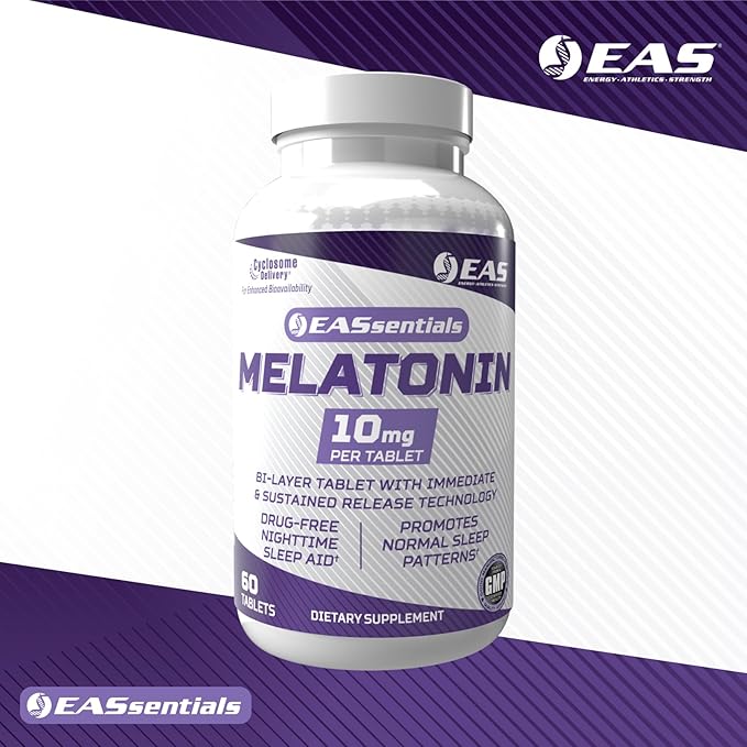 EAS Melatonin 10mg | Drug-Free Nighttime Sleep Aid | Immediate & Sustained Release Technology | Better Absorption with Cyclosome Delivery | 60 Tablets