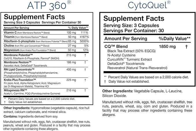 - ATP 360 Next Generation Mitochondrial & Cellular Energy Supplement - A comprehensive formula to support the health of the mitochondria. Using powerful, researched ingredients, ATP 360 supports the entire energy cycle and promotes healthy mitochondrial growth.*