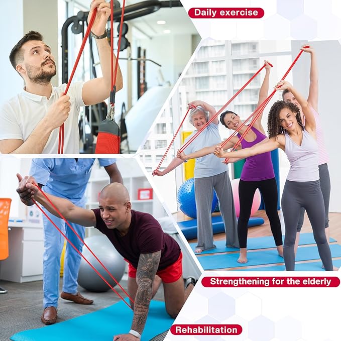 - Wide Range of Applications: the resistance tubing is suitable for athletes, exercisers, the elderly and more, whether you're working out from home, at the gym, or even in the office during lunch break, this resistance band is your go to fitness friend, suitable for yoga, aerobics, Pilates, or even physical therapy, providing versatility for any circumstance
