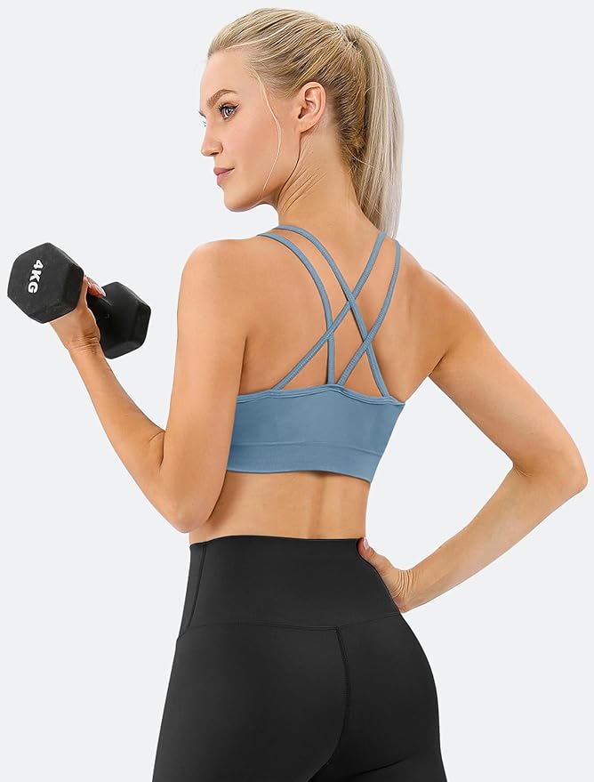 - Removable Padding & Wireless:Customize your look with insertable/removable cups and wash them separately. The wireless design of our strappy back sports bra eliminates rib cage pressure for all-day comfort.