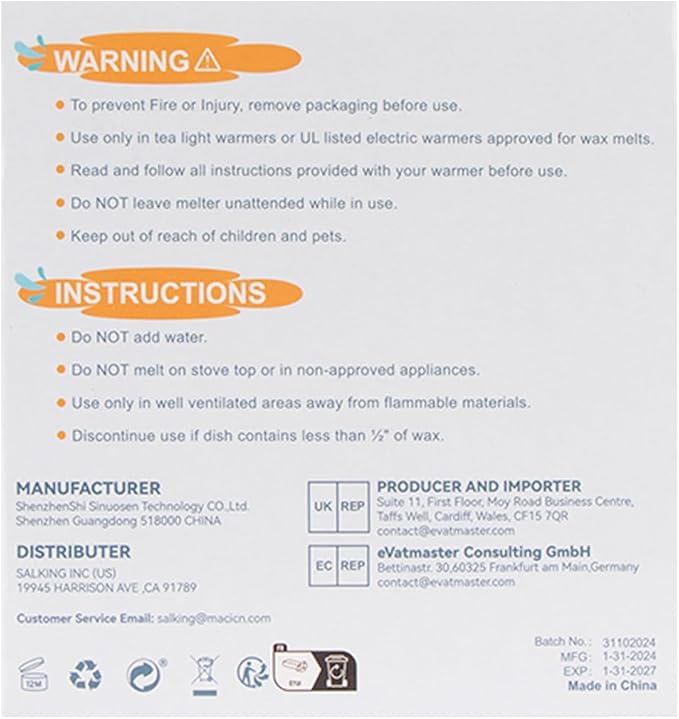 - Multi-Purpose Applications - Beyond traditional wax melters, these versatile melts can be utilized creatively for their captivating scents. Consider placing a piece in a fabric drawer, closet, or linen storage to infuse your clothes with a pleasant aroma. They can also be placed in potpourri sachets to add a touch of fragrance to any room or enclosed space. If you have any questions about wax cubes, you can email us or leave a message in Q&A. We look forward to your letter and suggestions to make us do better.