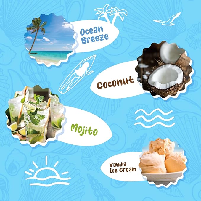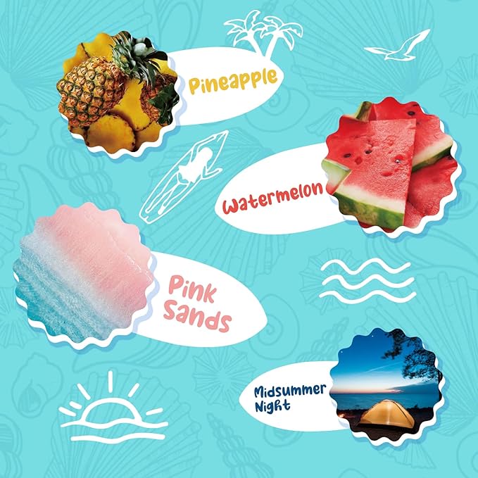 - Pure Summer Aromas - Immerse your home in the delightful scents of the season with our Summer Wax Melts Set. This scented wax melts gift set includes Ocean Breeze, Coconut, Mojito, Vanilla Ice Cream, Pineapple, Watermelon, Pink Sands and Night. Elevate your space with 8 vibrant summer scents, offering a sensorial journey through the season's scents and infusing your surroundings with a refreshing, enduring fragrance.