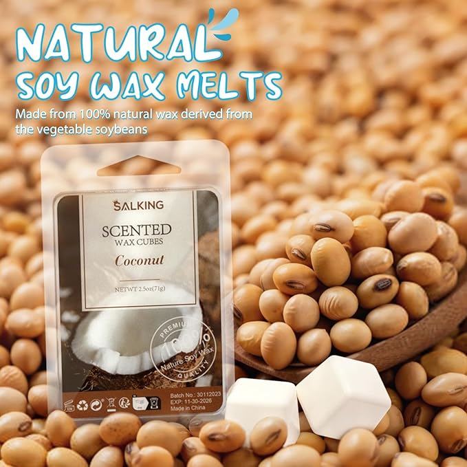 - Pure, Natural Soy Wax - Our wax cubes are meticulously crafted using 100% soy wax and a thoughtfully curated blend of essential oils, each small piece melts evenly, ensuring a clean, eco-friendly, and natural fragrant experience. You can enjoy these holiday scents with peace of mind.