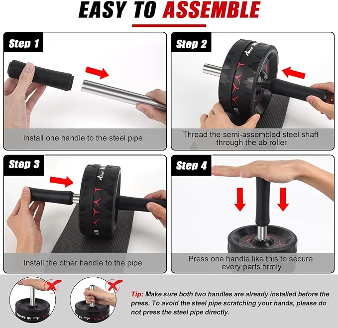 - Amazingly Durable & Stable: The high-strength stainless steel shaft of the ab roller for abs workout can hold a maximum weight of 500 pounds for your safety. EVA rubber cotton handles provide nonslip and comfortable grip