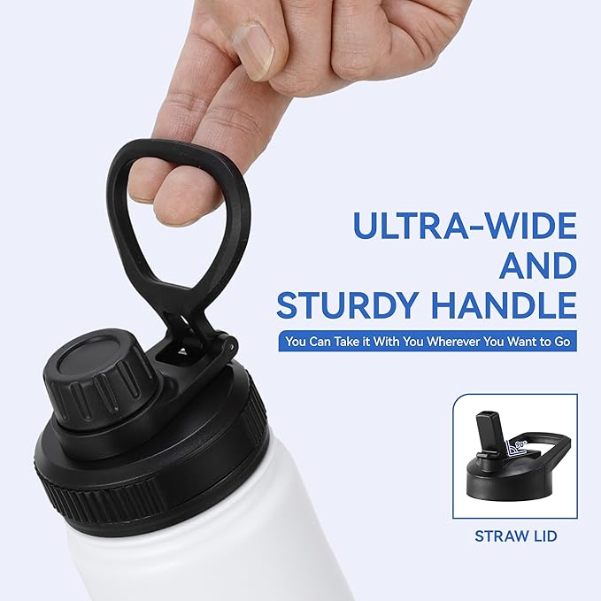 - Leak Proof: Two kinds of lids: Spout lid and flip lid, both of which can effectively prevent leaks. And the wide handle of the spout lid allows you to hold three fingers, reducing the pressure on your fingers when walking