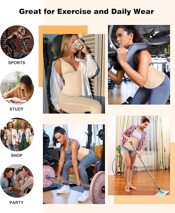 • MEET THE NEEDS OF DIFFERENT BODY SIZES: The waist trainer for women with lower belly fat has adjustable rows of buttons and a zipper, allowing for customization to different body sizes and helping to shape the perfect waistline. Our weight loss belt can accommodate any body type, providing unique comfort.