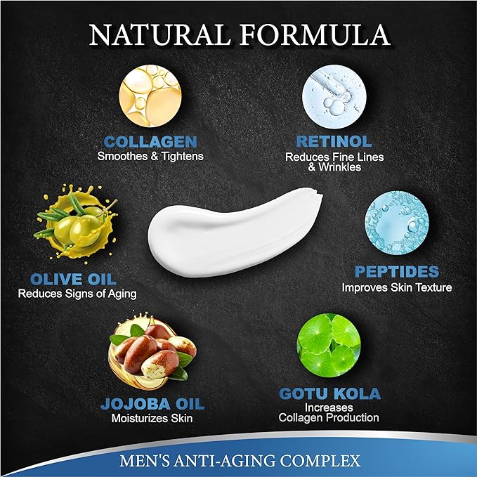 Mens Face Moisturizer Cream - Anti Aging & Wrinkle Cream - Face Moisturizer For Men with Collagen, Retinol, Peptides, Jojoba Oil - Facial Skin Care & Eye Lotion - Day & Night - 4.2 OZ