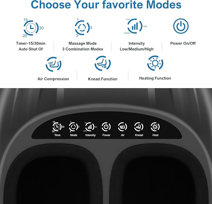 - User-friendly & Portable: The easy-to-use wireless remote control and control panel make it easier for you to control the foot massager. It provides the air massage with 3 adjustable levels on the instep, heel, and ankles, which can be combined with kneading and heat functions to relax yourself. It is recommended to start with a low intensity for the first use to avoid any discomfort.