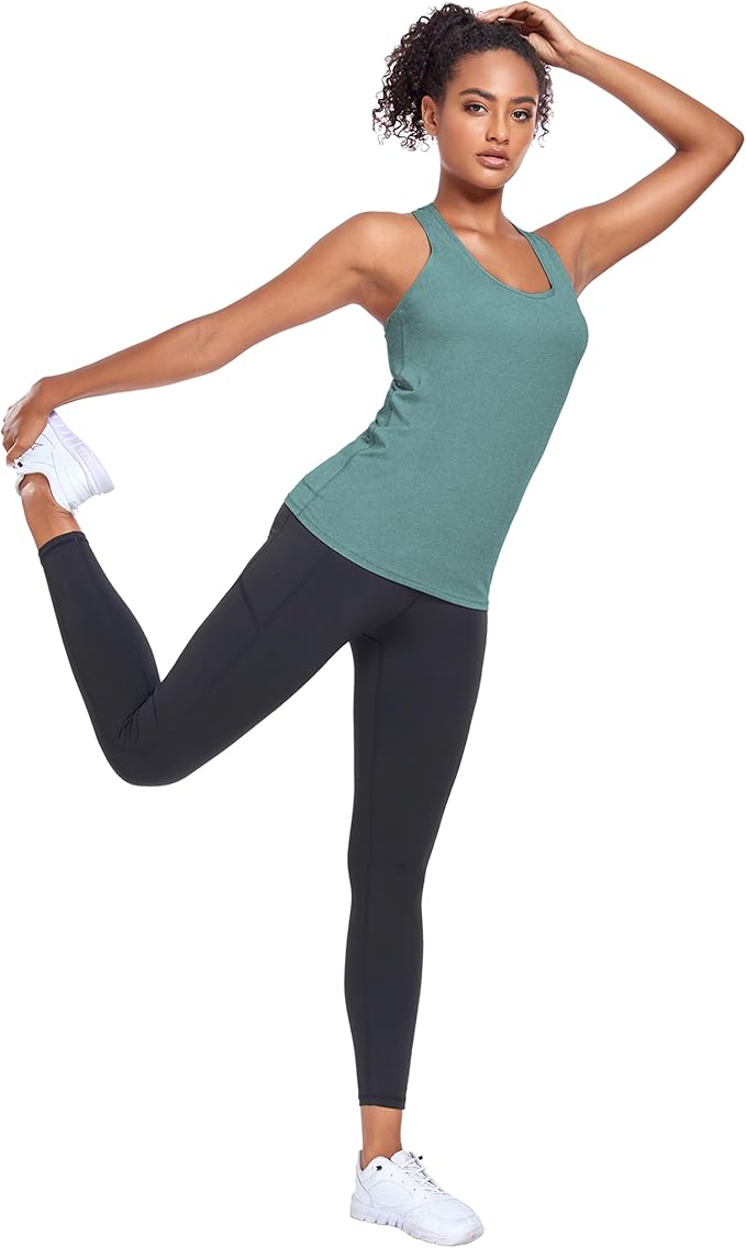 - DESIGN: Featuring a racerback and a round neck, it creates a sexy look on back. Properly long curved hem, makes this athletic tank tops pair perfectly with your pants, leggings, shorts, shirts for a cool everyday look, and also makes you more beautiful.