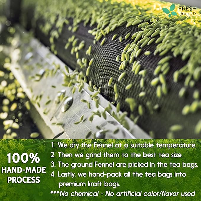 - ☘️ FENNEL TEA BAS MADE BY A HAND-MADE PROCESS: Fennel Seeds are picked at their flavorful/colorful peak and naturally sun-dried to perfection. We hand-select only the premium seeds of Fennel for the utmost quality. Then we grind the herbal seeds into the best tea size. Next, we immediately pack it in eco-friendly tea bags. Lastly, we pack the tea bags into food-grade kraft bags for ultimate freshness.