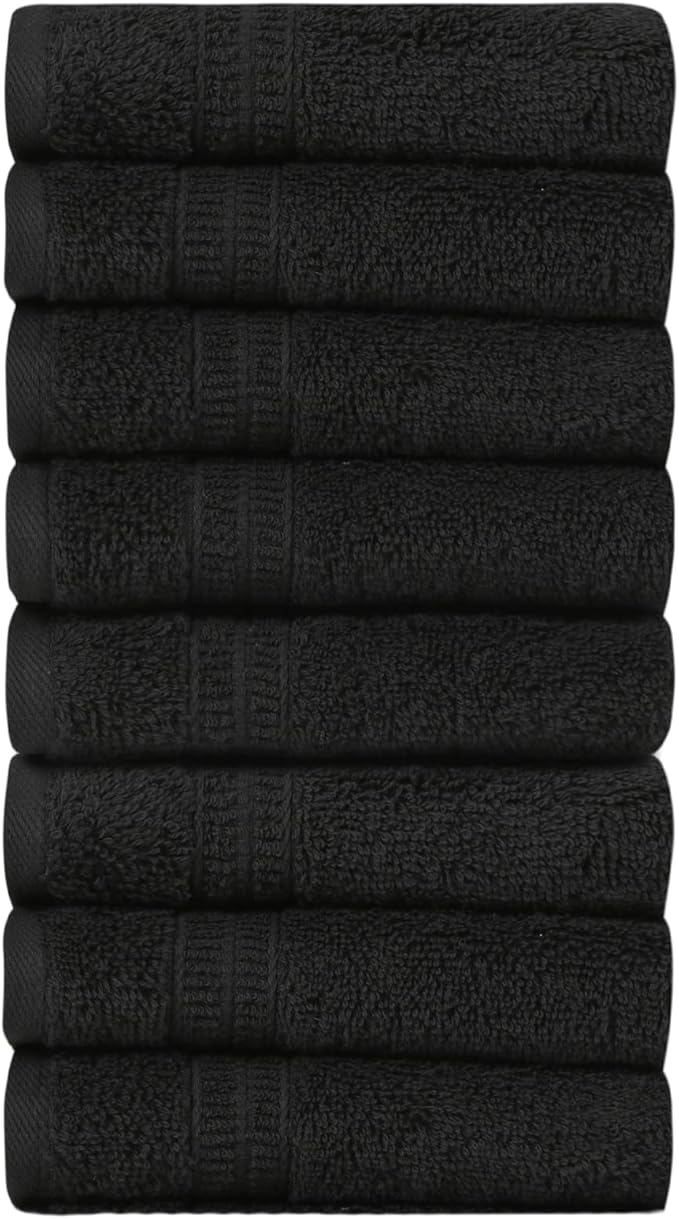 HOMELOVER 8 Pack Washcloths - 100% Organic Cotton, 500 GSM, Hotel & Spa Quality, Soft, Quick Dry, Highly Absorbent Towels for Face & Hand Wash, Shower, Gym & Bathroom Essentials (Charcoal Black)