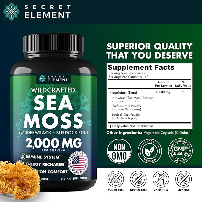- Ultimate Health Supplement: No need for dozens of vitamins and bottles; Secret Element's Wildcrafted Sea Moss capsules contain 92 key vitamins and minerals responsible for your body's function and wellness, making it a convenient choice for your daily routine
