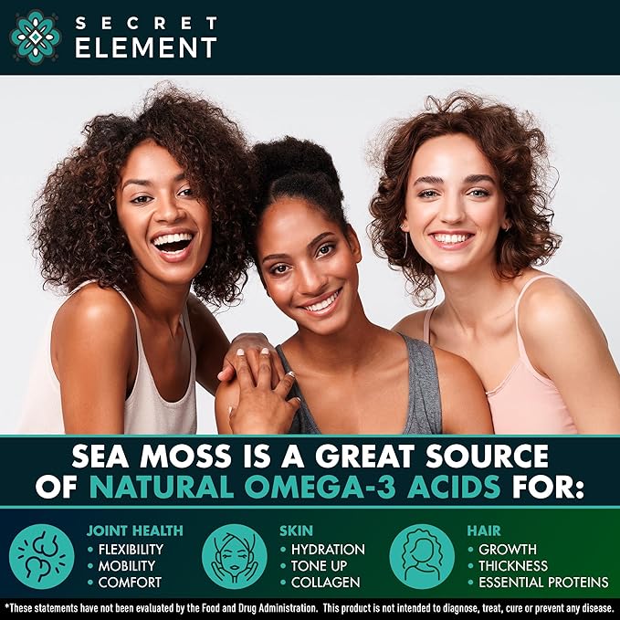 - Beauty & Aging: our real Sea Moss supplement benefits skin, hair, nails, muscles, joints, and knees, as it strengthens tissues and promotes collagen production, while providing antioxidants for protection against free radicals, keeping the age at bay