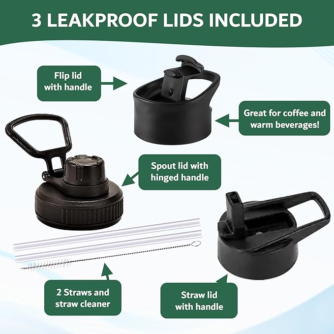 Travel Water Bottle with 3 Lids (Spout, Straw, Flip) Leak Proof, Quality, Vacuum Insulated, Stainless Steel (Day & Night, 18 oz)