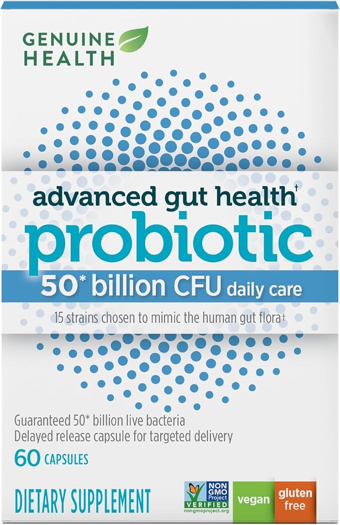 Genuine Health Probiotics, 50 Billion CFU, Daily Care, 15 Diverse Strains, Soy Free, Gluten Free, Vegan Delayed-Release Capsules for Advanced Gut Health (60 Count)