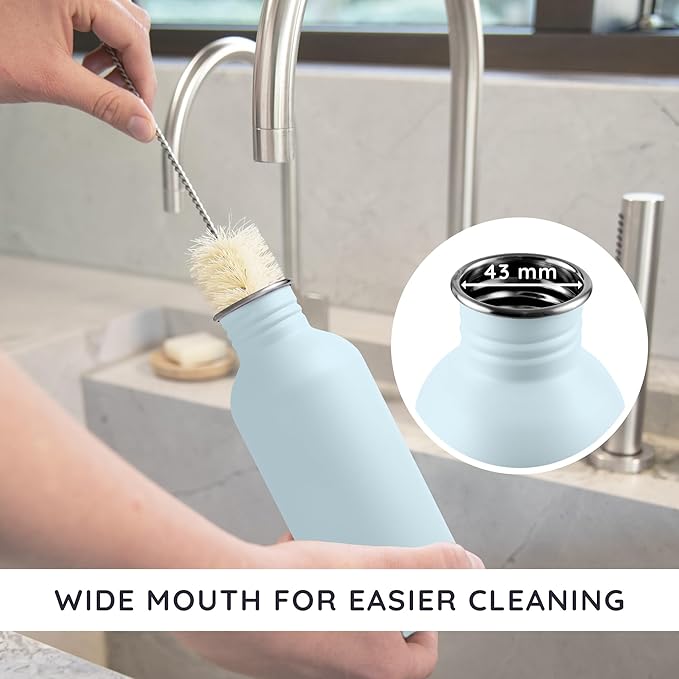 - Easy to clean: With its spacious neck design, our dishwasher safe water bottle offers simple maintenance. You can clearly see inside and reach every corner with a bottle brush.