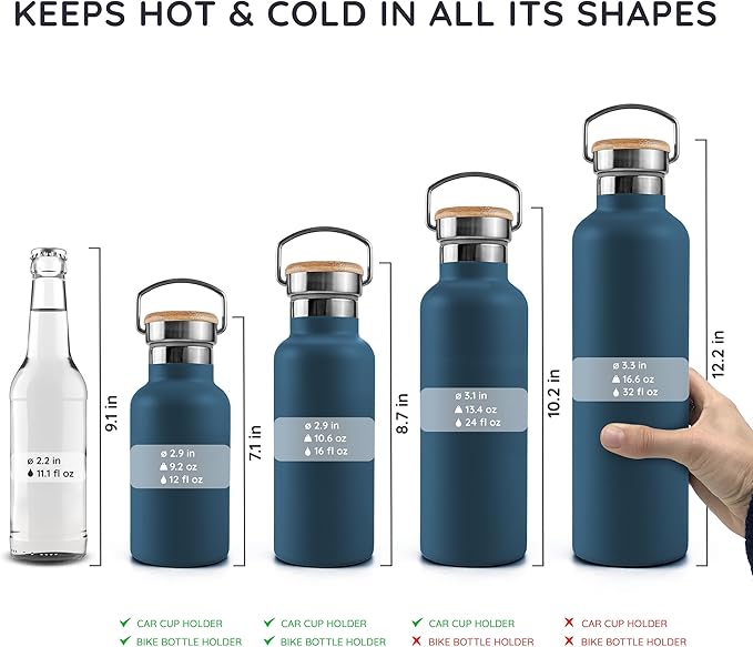 - Double wall insulated: Stay hydrated in all circumstances! The insulated water bottles keep drinks hot for 12 hours and cold for 24. Perfect for all your daily adventures.